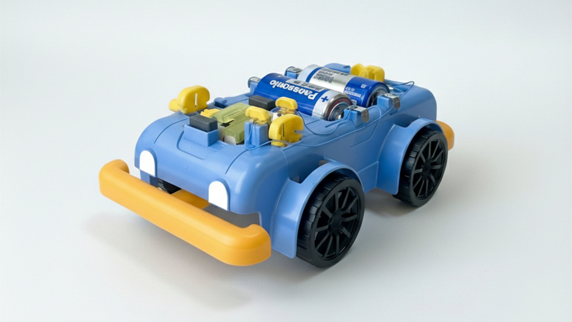 小学校の理科教材の「電流と電磁石」の学習で使用する、組み立て式の実験キットのデザイン。
